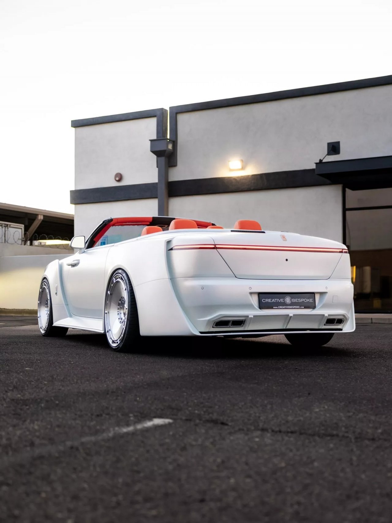 Dubajski predelovalec Venuum se je znesel nad elegantnim kabrioletom in ga spremenil v snežno belo gmoto širokih obokov in oranžnega usnja.