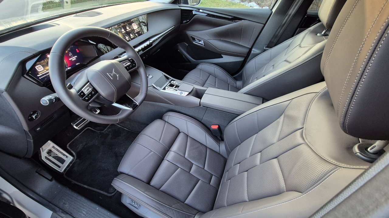 Večino bogate vsebine N°4 pokaže v notranjosti. V tem delu je praktično na vsakem centimetru opaziti, da so se mojstri pri DS-u z vso možno mero posvečali razvoju. Ko sedem v potniško kabino najprej občutim topel sprejem usnjenih sedežev, ki me prijetno objamejo, a hkrati težko spregledam žlahtnost materialov na vratnih oblogah, sredinskem grebenu in na stropu. Všeč mi je, kako elegantno so v armaturno ploščo skrili prezračevalne odprtine in v večji meri ohranili fizične gumbe ter stikala. Velik gumb za zagon pogonskega sklopa je postavljen na sredino armaturne plošče. Edina skupna točka po čemer bi prepoznal, da N°4 prihaja iz Stellantisovega koncerna, je selektor za prestave samodejnega menjalnika.