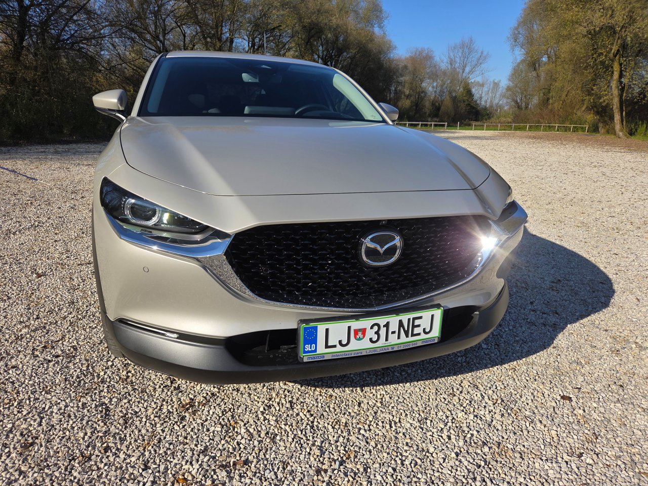 Oprema Exclusive Line je za CX-30 optimalna izbira iz zlate sredine, ki ponuja vse bistvene sladkorčke (pametni ključ, ogrevani sedeži in volan, 18-palčna kolesa). S ceno 35.090 evrov sicer ni med cenejšimi, je pa dobra premium alternativa za vse, ki jim gre germanska železnina občasno na živce. V ceni sta še dodatka, avdio sistem Bose z 12 zvočniki in 360-stooinjska kamera, dodatno pa je bil avto obarvan še v Platinum Quartz barvo za 500 evrov, ki je končno ceno dvignila na 35.590 evrov.