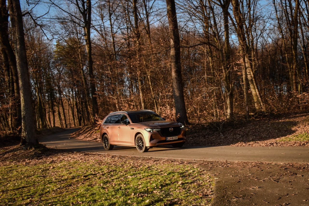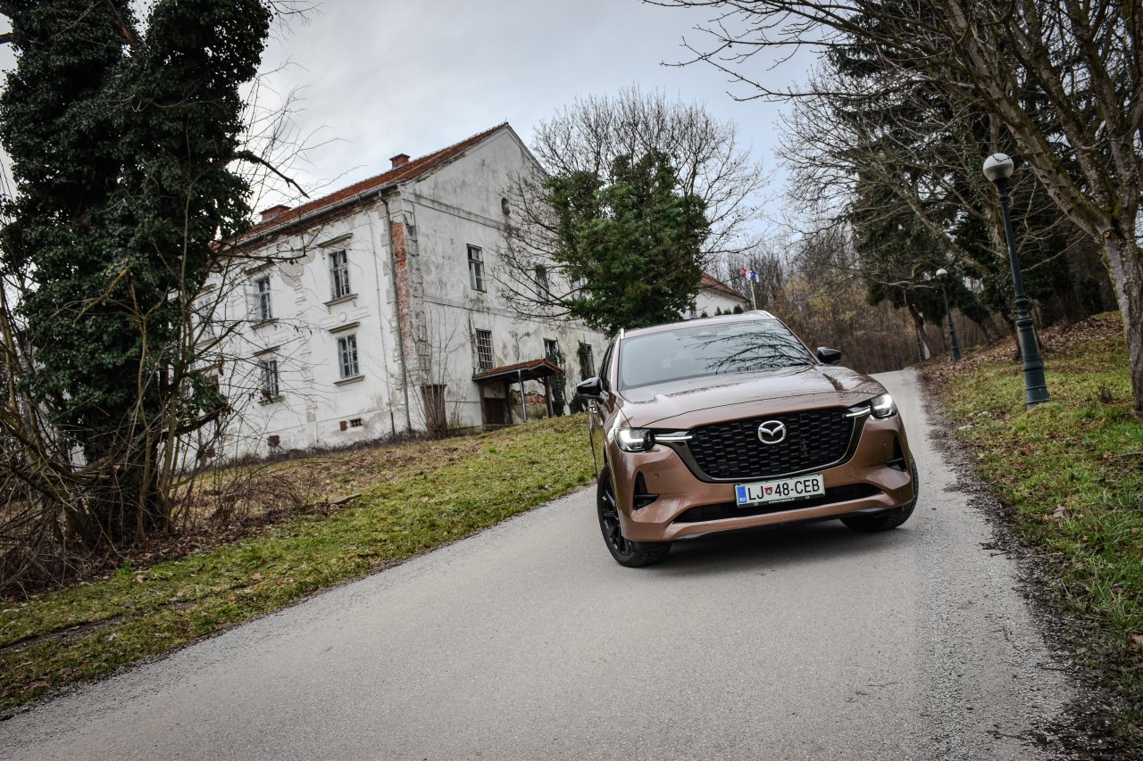 Zanimivo je, da CX-80 nima prilagodljivega (adaptivnega) podvozja, kar mu v tem premijskem razredu na papirju prinaša nekaj minus točk, saj kupci to enostavno pričakujejo. A so praksi inženirji pravzaprav vse naredili prav. Podvozje navduši z udobjem; udarne jame in luknje elegantno »golta«, grbine pa za velikega Japonca prav tako ne predstavljajo težav. Tudi na slabih cestah avtomobil ohranja mirnost in skrbi za maksimalen nivo udobja.