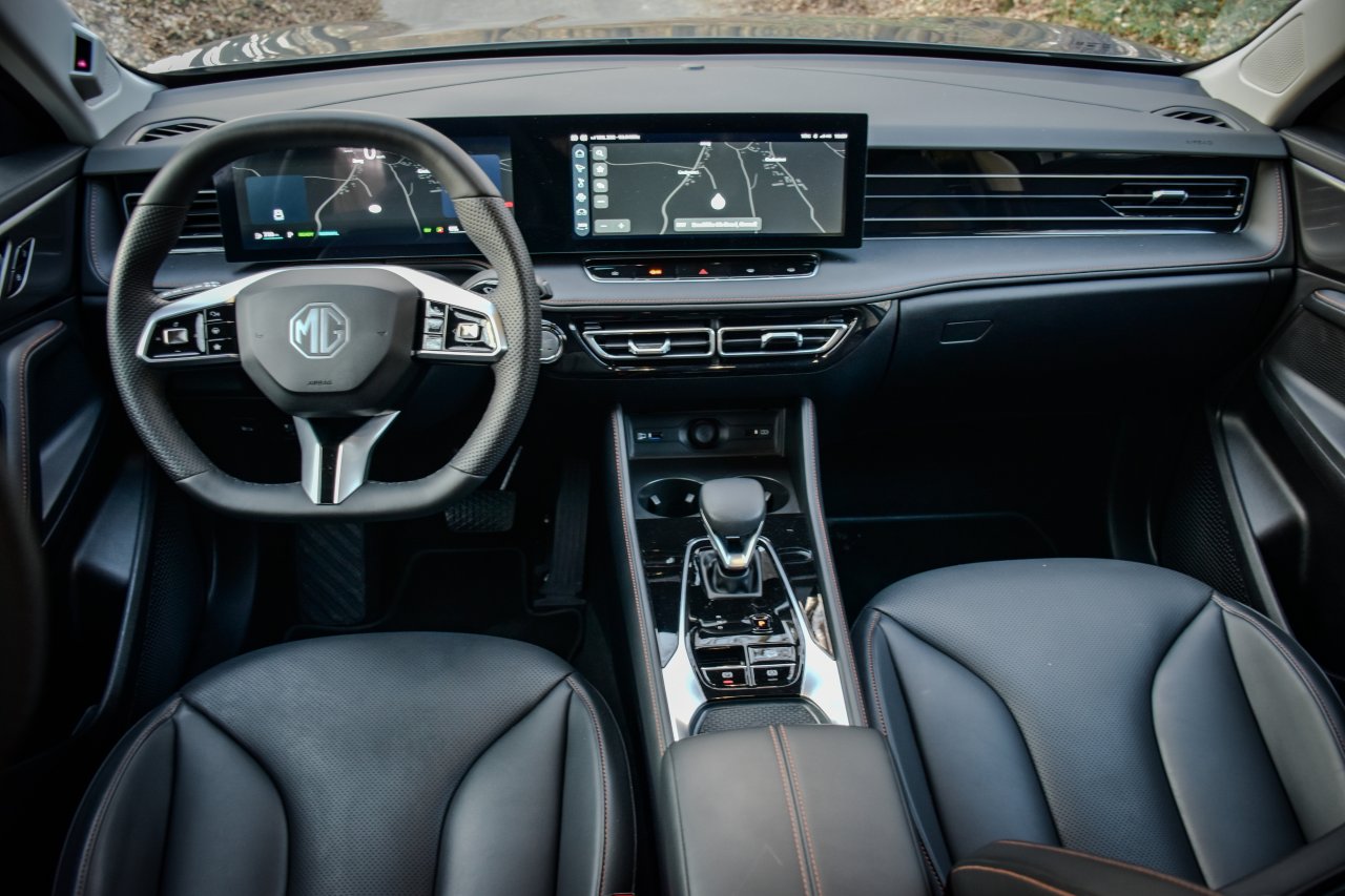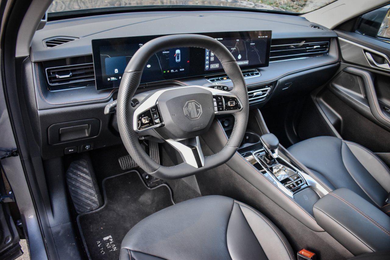 Kako pa je v notranjosti? Tukaj je MG našel pravo ravnovesje med digitalizacijo in praktičnostjo upravljanja. Najpomembnejše funkcije klimatske naprave so še vedno dostopne prek analognih tipk, struktura menijev informacijsko-razvedrilnega sistema pa je intuitivna in logično razčlenjena. Boljša je tudi hitrost odzivnosti pri preklapljanju med pogledi na zaslonu, kar v preteklosti ni bila odlika MG-jevih infozabavnih sistemov, pa čeprav čisto brez digitalnih mrkov tudi tokrat ni šlo. Haptika je vseeno na ustreznem nivoju, še vedno pa motijo nekoliko raztreseni slovenski prevodi v infozabavnem sistemu, pa čeprav je bila večina tovrstnih napak vseeno že odpravljenih. Tudi kakovost materialov v notranjosti načeloma "štima", je pa predvsem na spodnjem delu notranje zasnove še vedno precej trde plastike, ki malce odvzame duh po prestižu, ki so ga snovalci želeli prikazati vozniku in potnikom.