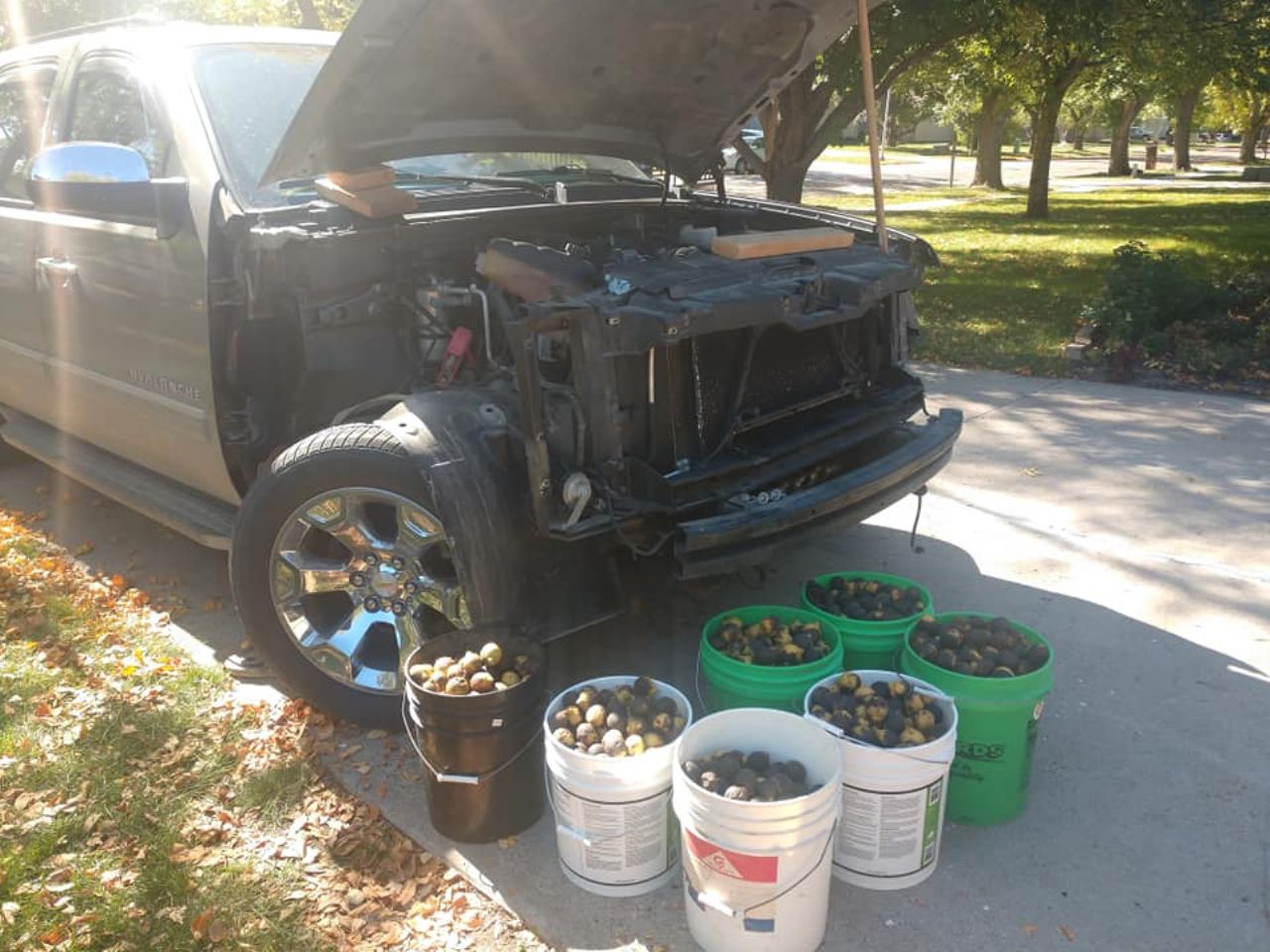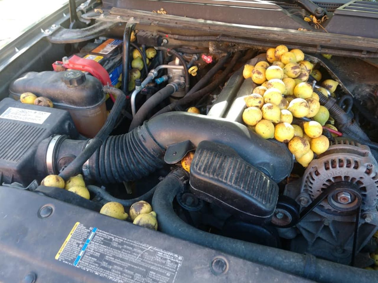 V Severni Dakoti v ZDA se je eni veverici pošteno odpeljalo v ideji preživeti hudo zimo (ali morda ledeno dobo?). Pod motorni pokrov in ostale votle dele Chevroleta Avalanche je naložila kar za 70 kilogramov orehov. Živali pogosto shranjujejo reči za preživetje v avtomobile, ampak ta veverica je zaloge vzela kot življenjski projekt.