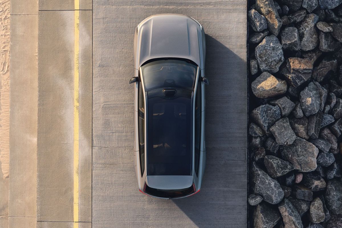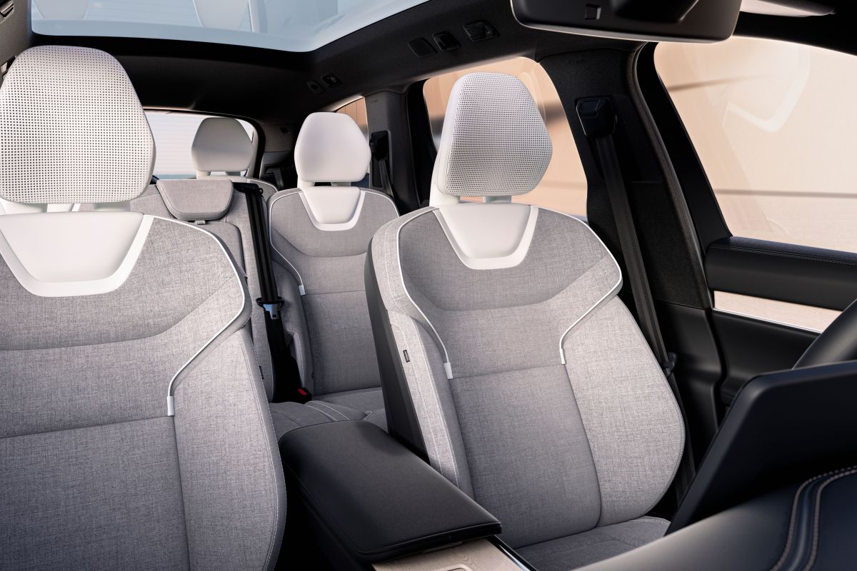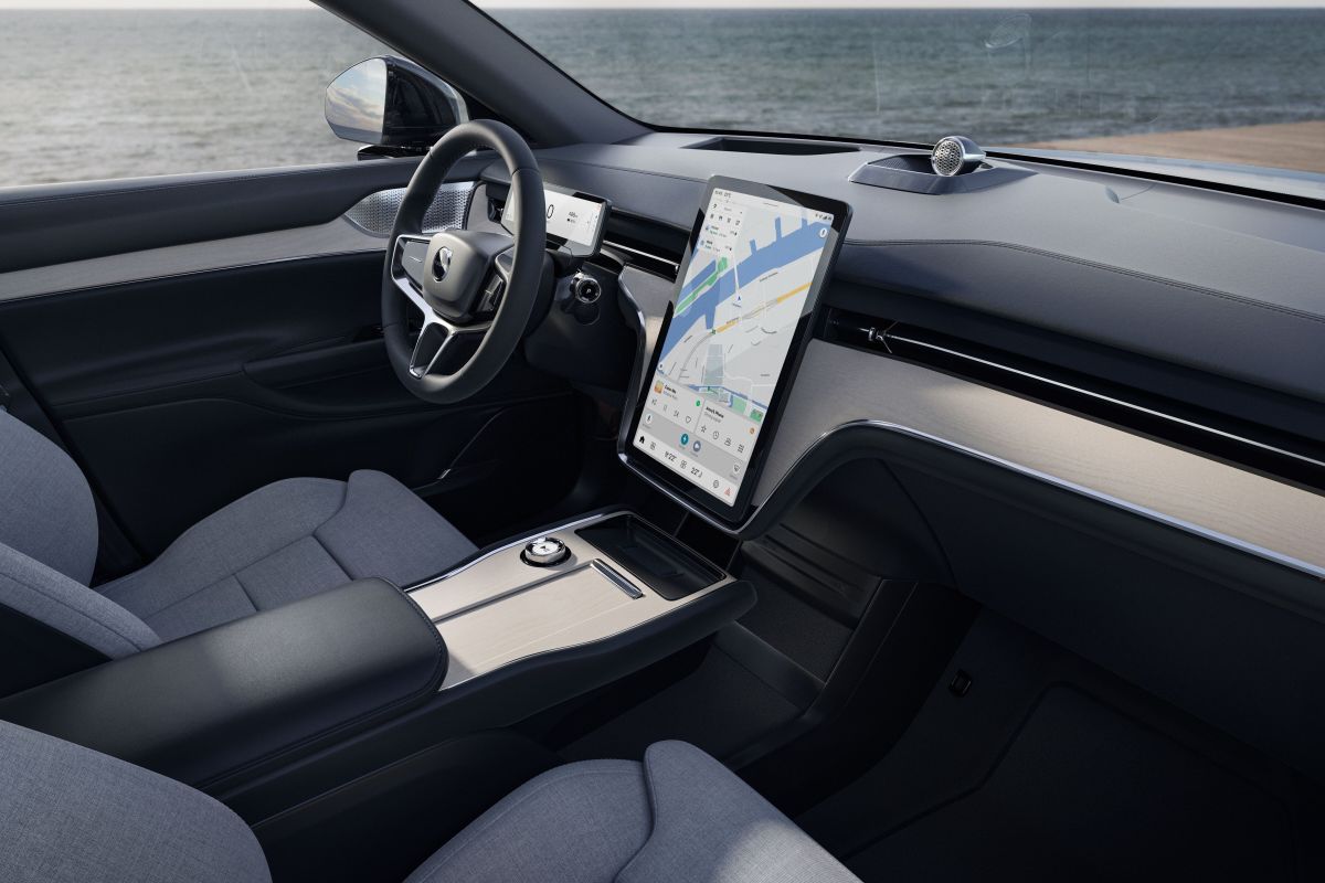 Thorove luči (v obliki Thorovega kladiva) so zdaj del oblike luči in spominjajo na Polestar 3, videli pa smo jih na lanskem konceptu Recharge. Preostali del nosu in boki so zelo umirjeni, sorodstvo z XC90 pa je vidno tudi zadaj, luči še vedno ostajajo zapeljane do vrha zadnje šipe, so pa vmes prekinjene, spodnji del pa se nadaljuje proti sredini. Spustili so tudi registrske tablice in te so zdaj na odbijaču in ne več del prtljažnih vrat, tam je zdaj napis Volvo.
