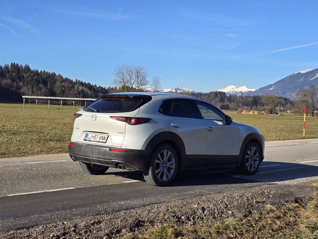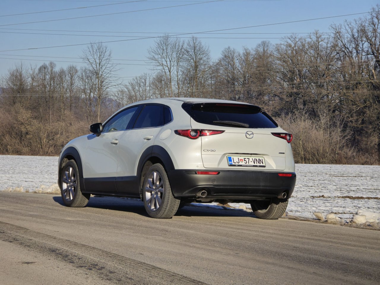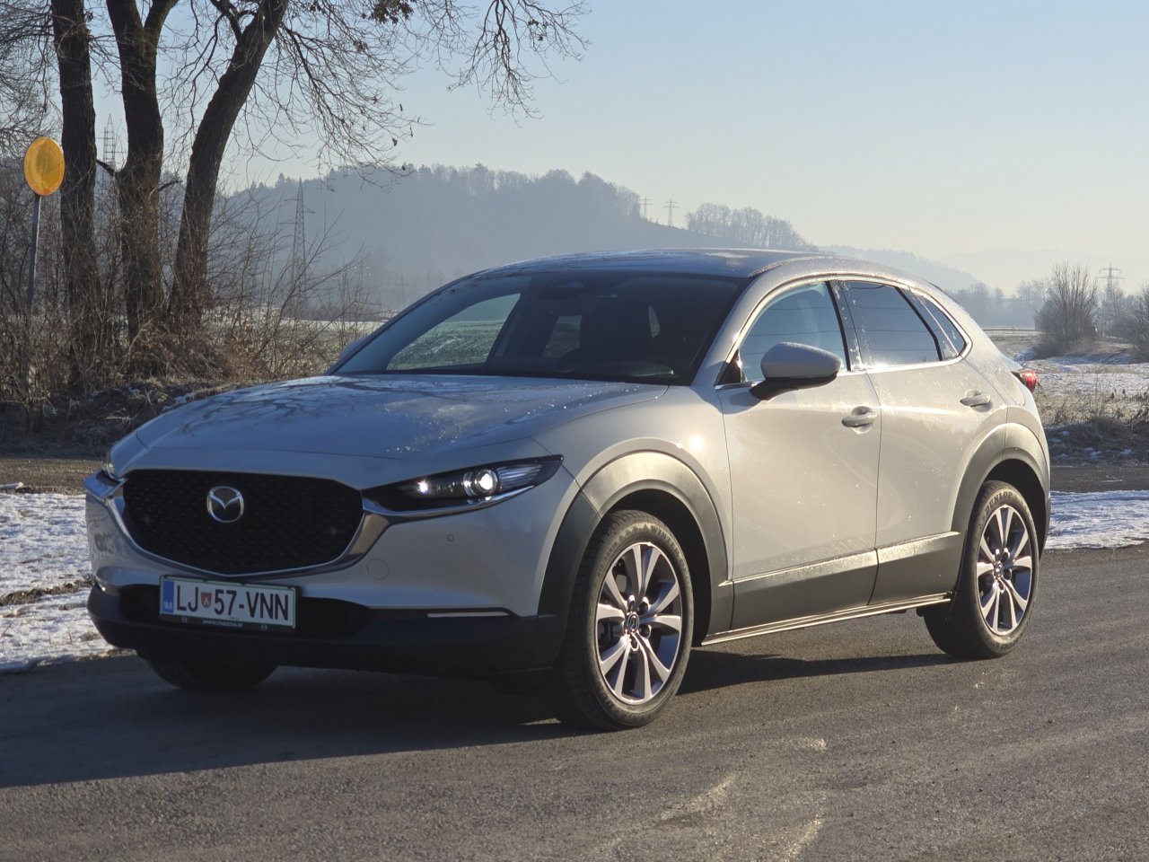Še več, niso mu privoščili niti večje moči, ampak so ga umestili kar v osnovno različico. Kdaj ste nazadnje vozili 2,5-litrski štirivaljnik v relativno majhnem, 4,4-metrskem avtomobilu? Model poznamo še precej časa in v primerjavi z manjšo CX-3 resda ponuja več prostora v vseh segmentih. Pokriva prehod med majhnimi in srednje velikimi SUV-i. Oblika Mazde CX-30 je družinsko ostro zasnovana z veliko masko, majhnima, ostrima in zelo dobro delujočima žarometoma v matrični LED tehniki. Bočna linija ni pretresljiva, skupaj z plastičnimi obrobami kolesnih obokov vred. Zadek je nekoliko višje postavljen in zelo skladen. Avtomobil je ravno prav dolg, da ne daje vtisa prevelike kompaktnosti.