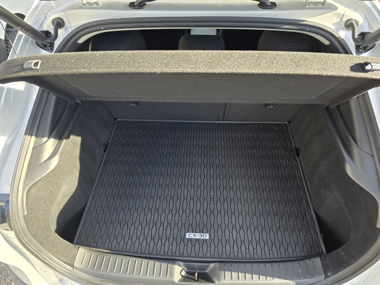 Merilniki so kombinacija velikega sredinskega zaslona in klasičnih merilnikov. Berljivost je perfektna, mnoge novotarije pri konkurenci se lahko samo skrijejo. Prostor za shranjevanje dokumentov ni prevelik, v vratih, na sredinski konzoli in za sedeži najdete dodatne prostore. Pomik naslonjala za roko omogoča prijetnejše počivanje desne roke, na istem mestu zadaj pod njim pa najdete tudi dodatna dva zračnika. Prtljažna vrata so velika, odpirajo pa prostor velikost 430 litrov. Dno je dvojno ali trojno, če upoštevamo še prostor za nizkotonec povsem na dnu. Zadnja klop se zloži v nekoliko nagnjeno površino. Dodatno je potrebno upoštevati, da CX-30 ni izrazito dolg avto. Za popolno podiranje zadnje klopi je potrebno naprej premakniti tudi sprednja sedeža.
