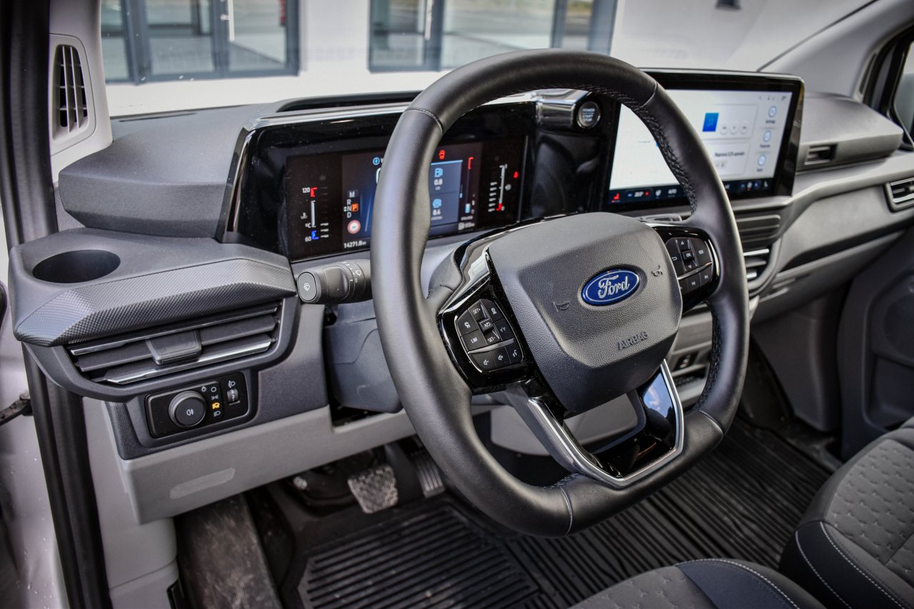 Polno opremljen Transit Custom, ki, mimogrede, s ceno prileze skoraj do petdesetih tisočakov, ponuja praktično vse, kar si voznik lahko zaželi. Tukaj ne moremo mimo LED-žarometov, ki so prilagodljivi, velik poudarek pa je tudi na udobju voznika, saj v mrzlih dneh lahko izkoristi ogrevane sedeže, volanski obroč in vetrobransko steklo. Kot v osebnih avtomobilih je na voljo tudi indukcijsko polnjenje mobilnega telefona, da boste vedno dosegljivi (integracija Apple Carplay in Android Auto je seveda samoumevna), v veliko pomoč pa je tudi 360-stopinjska kamera, ki močno olajša manevriranje, še posebej, ker nimate možnosti pogleda skozi vzvratno ogledalo na sredini. Ko so že pri sredini, omenimo še, da je mogoče brez težav prehajati od voznikovega sedeža do sovoznikove klopi, saj je dno popolnoma ravno. Še vedno pa pogrešamo fizične gumbe. Vsaj za nadzor klimatske naprave.