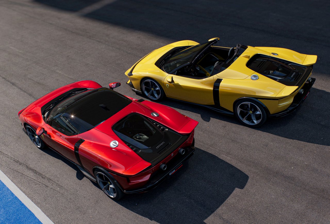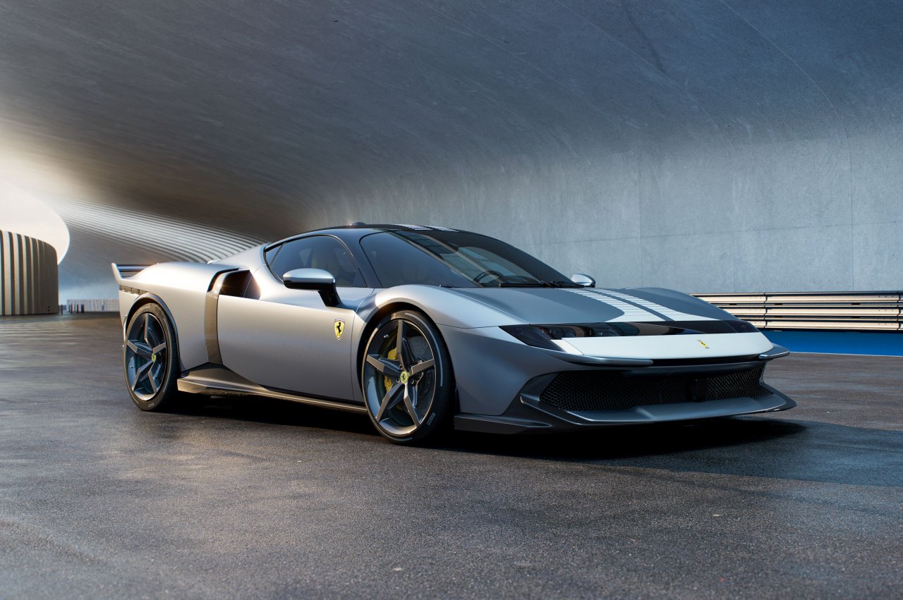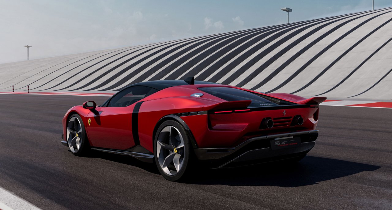Za optimalne zmogljivosti je na voljo aktiven zadnji spojler, ki se lahko razpre ali skrije v manj kot sekundi. V kombinaciji z dvema manjšima spojlerjema v odbijaču ustvari do 415 kilogramov potisne sile pri 250 km/h – 25 kilogramov več kot SF90. Paket Assetto Fiorano prinese še bolj agresivno aerodinamiko in zmanjša maso za 30 kilogramov, s čimer se suha teža spusti na 1.570 kilogramov.