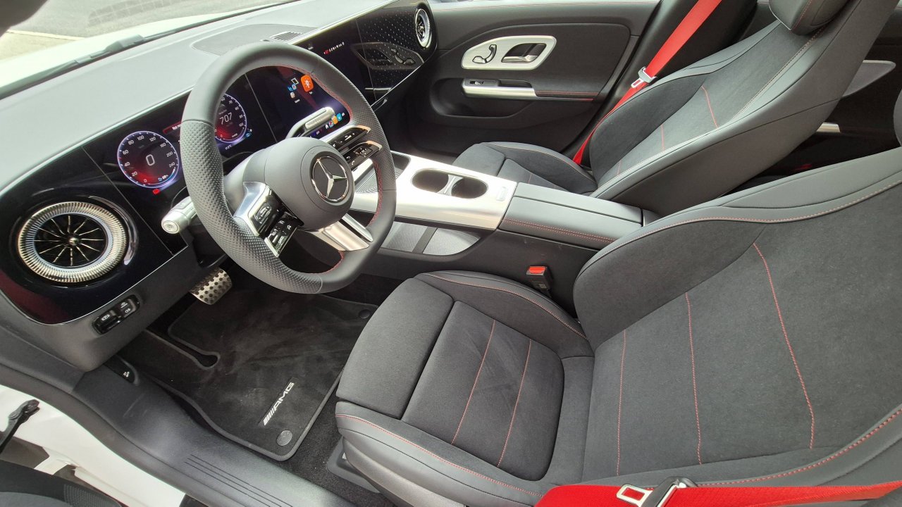 V celoti prenovljena je tudi potniška kabina. Najbolj impresivno je vozniško okolje, kjer je informacijski sistem integriran tako rekoč čez celoten del armaturne plošče, saj CLA poleg digitalnih merilnikov in osrednjega zaslona omogoča vgradnjo tretjega zaslona za sovoznika, a je ta na seznamu dodatne opreme. Pri infozabavnemu vmesniku MB.OS velja izpostaviti dejstvo, da je ta tako programsko in strojno v celoti razvit znotraj Mercedesa ter da vključuje sistem umetne inteligence, storitve Googla in Microsofta. Pri Mercedesu pravijo, da se to najbolje pokaže pri inteligentni navigaciji, kjer ta najde najbolj udobno pot, z vključenimi postanki za polnjenje in s podatkom o zasedenosti. A to je delček celotnega mozaika, ki ga bomo raziskali ob daljšem druženju s CLA-jem.