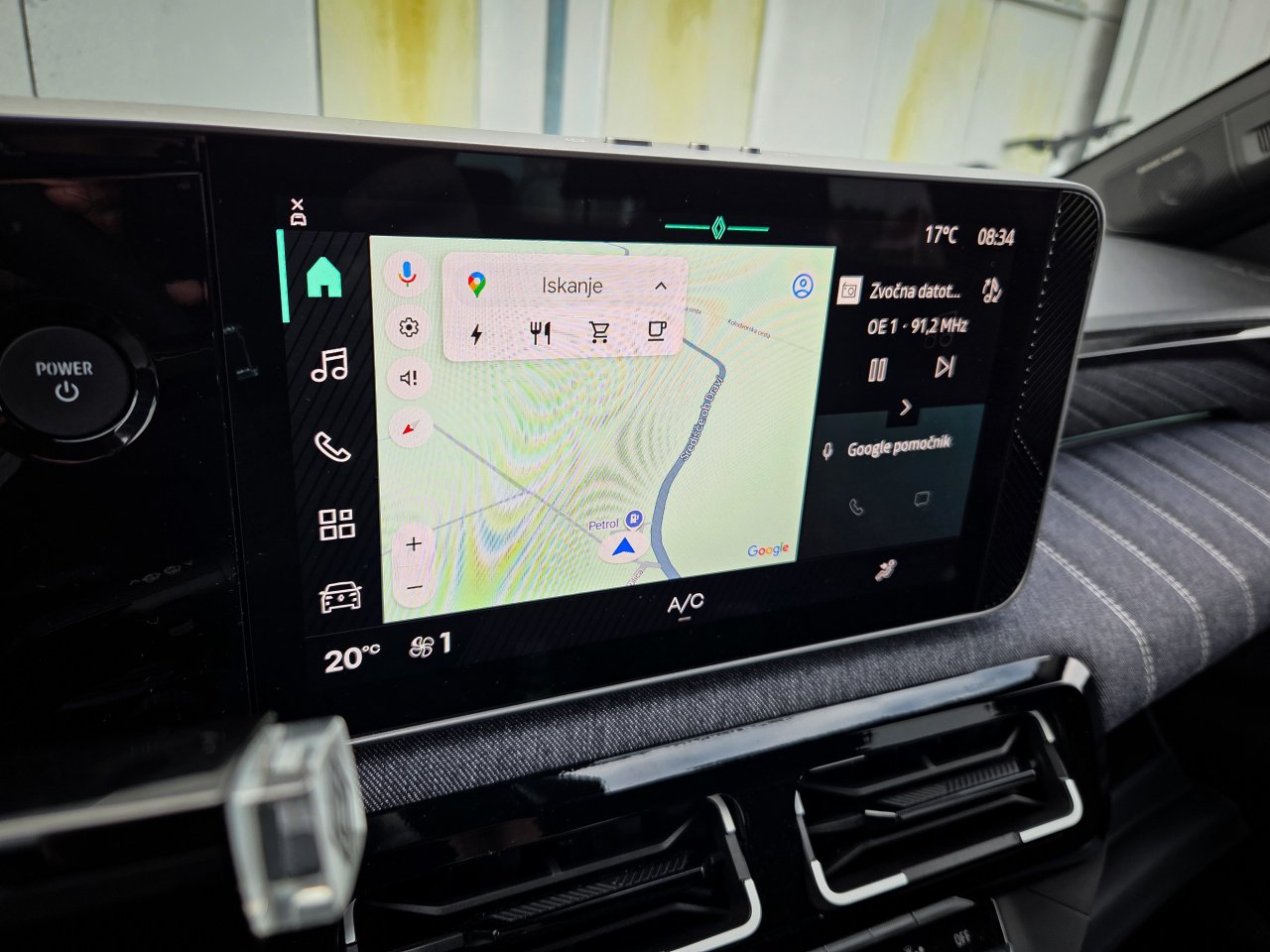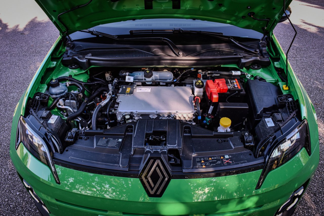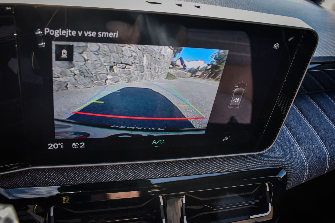 Tudi v notranjosti se tradicija in sodobnost prepletata. Na eni strani ima voznik tako pred sabo dva dobro odzivna 10,1-palčna zaslona, ki opravljata delo instrumentne plošče in infozabavnega sistema OpenR Link, povezanega s storitvami Google, hkrati pa pred sovoznikom del armaturne plošče zaobjema tkanina v duhu prešitega jeansa, ki daje notranjosti retro-veselo noto. Fizični gumbi za nadzor klime so dobrodošla funkcija, medtem ko domiselni (opcijski) dodatki, kot je zdaj že znamenito držalo za bageto, dodajajo edinstven francoski pridih. Tudi pri Petici so pri Renaultu uporabili izbirnik vožnje brez stopnje P, kar sprva marsikoga zmede, a njeno funkcijo nadomešča električna ročna zavora.