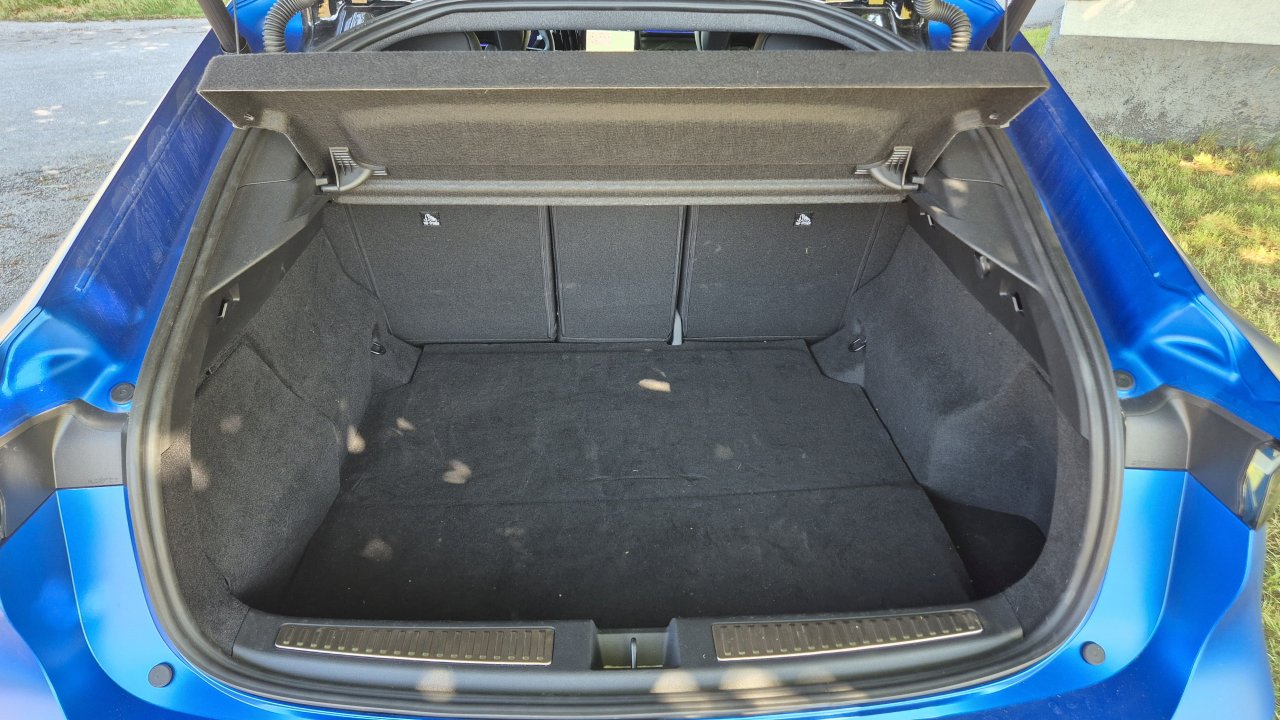 A gremo dalje. Pod potniško kabino in brez grebena v drugi sedežni vrsti je nameščena še 165 kilogramov težka litij-ionska baterija s kapaciteto 21 kWh, ki jo za Renault dobavlja kitajski BYD. Hitro polnjenje, denimo do 50 kW, kot to že omogočajo tekmeci, pri Rafalu ni možno, zato se baterije polnijo na domači klasični vtičnici (okrog 10 ur) ali na AC polnilnici, kjer proces traja debele tri ure (vgrajen 7,4 kW polnilnik). Zaradi večje baterije je prtljažnik z visokim nakladalnim robom in veliko odprtino pričakovano volumensko nekoliko manjši in meri 539 litrov (največ 1826 litrov), a me je zmotilo dejstvo, da za polnilne kable niso uredili primernega odlagalnega mesta.