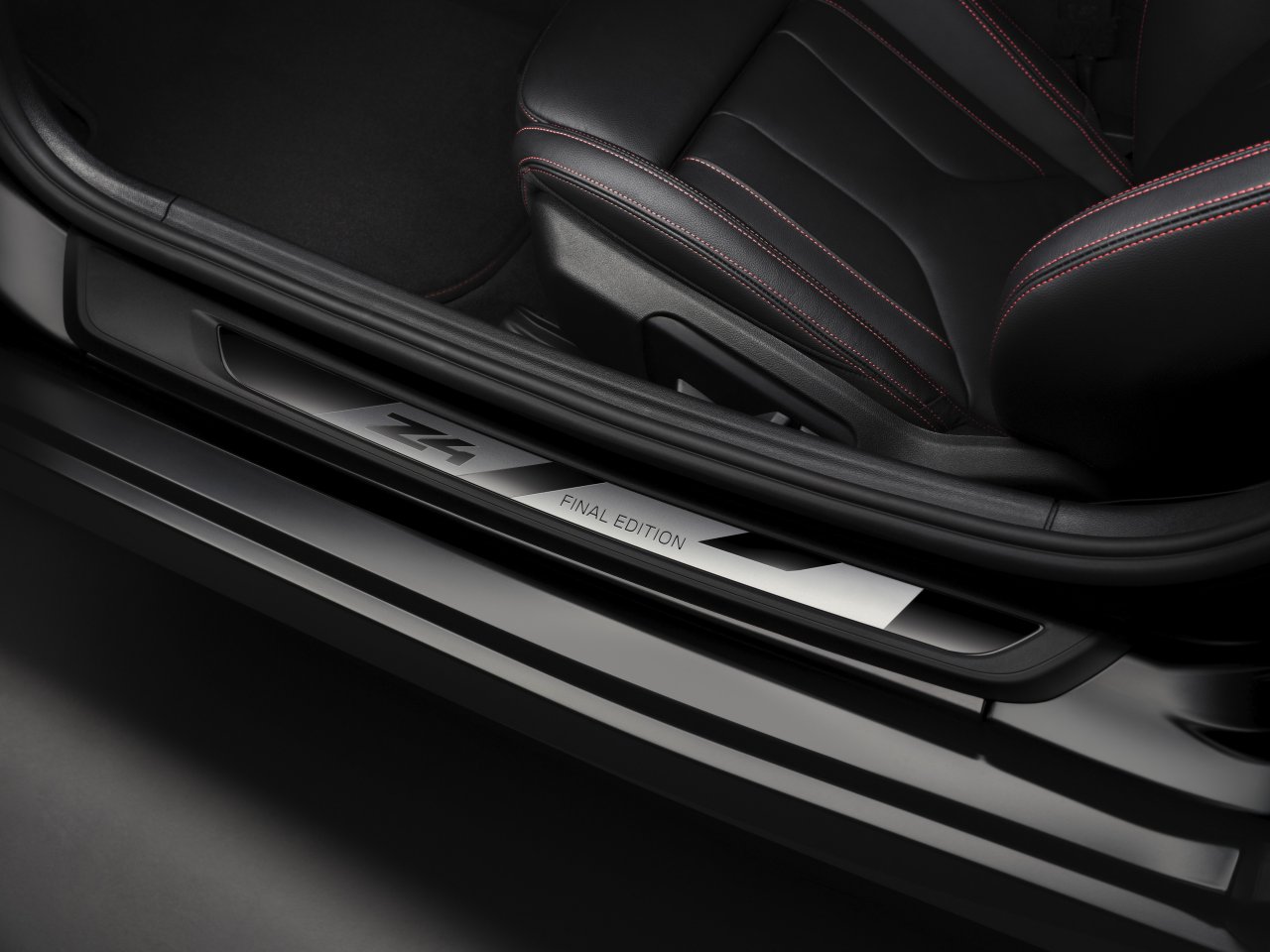Bavarski roadster bo konec proizvodnje dočakal spomladi 2026, ob tem pa so pripravili še posebno izdajo Final Edition. Kdor je pričakoval tehnične izboljšave, bo morda razočaran, saj gre bolj za vizualni poklon kot za kaj res novega. Paket ne predstavlja ločene različice, temveč dodatno opremo, ki jo je mogoče naročiti za vsak obstoječi Z4. Prinaša mat črno barvo Frozen Matt Black, ki je na tem modelu doslej ni bilo mogoče izbrati, rdeče zavorne čeljusti in nekaj rdečih poudarkov v kabini. Notranjost je oblečena v črno alkantaro s kontrastnimi rdečimi šivi, pragovi pa imajo vgravirano posebno oznako. Moč motorjev ostaja nespremenjena, paket pa serijsko vključuje še M visokosijajni Shadowline.