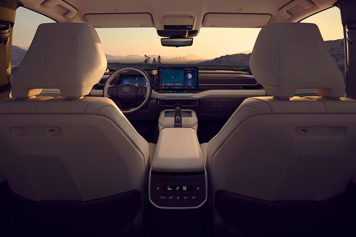 Oblikovno avtomobil ne preseneča tistih, ki podrobno spremljajo Toyotine študije, saj gre za serijsko različico koncepta bZ Large SUV, predstavljenega pred petimi leti. Vozilo nosi prepoznaven električni obraz znamke, ima v vrata potopljene kljuke in zadnje luči, povezane v svetlobno letev. Notranjost zaznamujeta 14-palčni osrednji zaslon in 12,3-palčni digitalni merilniki pred voznikom.