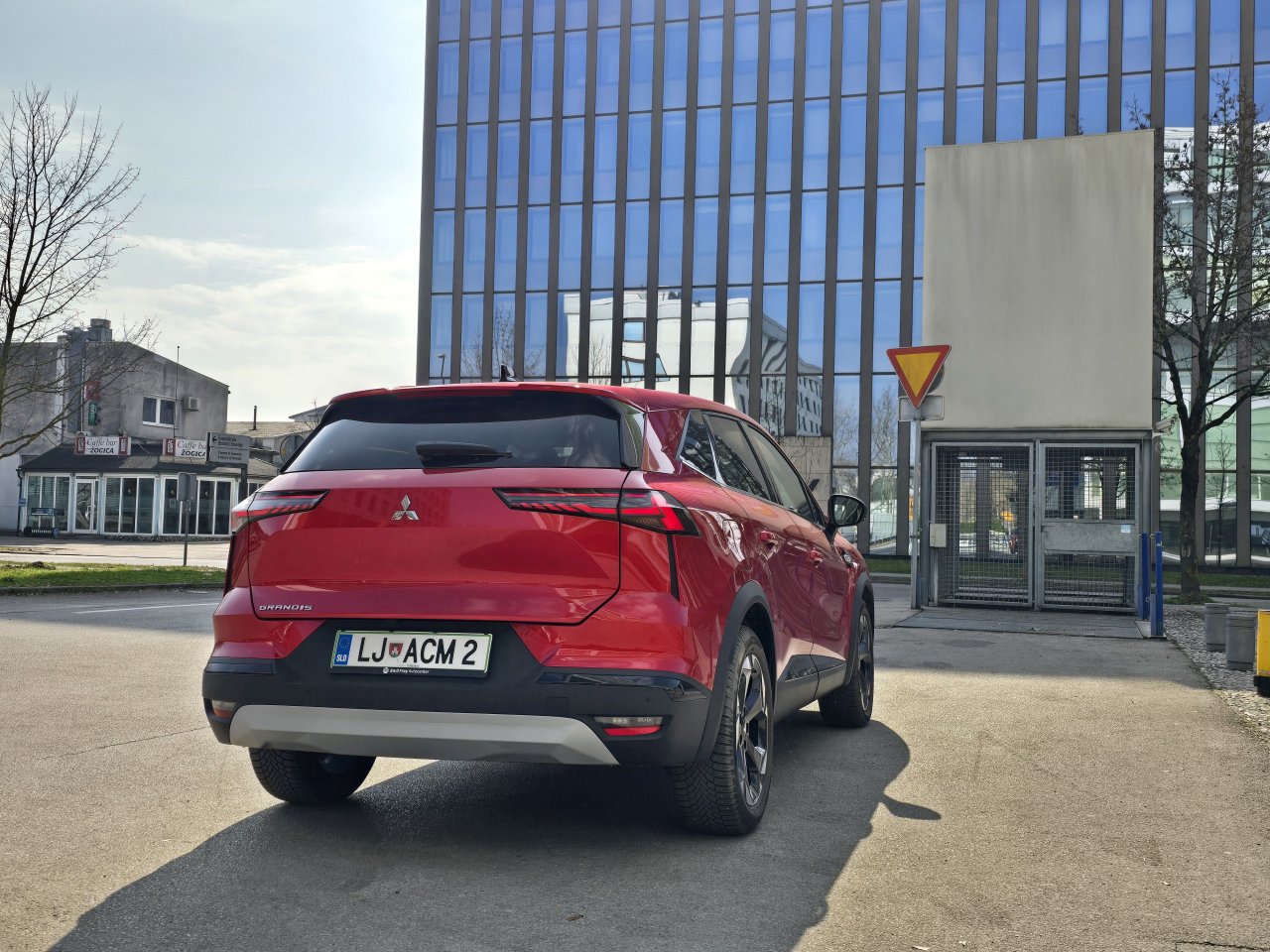 Oblika je zato v osnovi znana, saj velik Mitsubishijev diamant na maski ne spreminja osnovnih linij. Kot SUV s kompaktnimi merami cilja na podobno skupino kupcev kot originalni Grandis, a s sodobnim pridihom. Kljub sorodstvu s Symbiozom pa avtomobila nista povsem identična. Mitsubishi je močno poudaril svojo identiteto z uporabo dinamične črnine namesto kroma, ki ga najdemo pri Renaultu. Videz pa dopolnjujejo 19-palčna platišča. Zadnje luči so grafično spremenjene in delujejo bolj prijetno, kar pa je seveda stvar osebnega okusa.