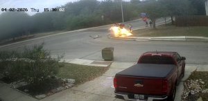 Motocikel je po trčenju eksplodiral, otroci, ki so stali na pločniku, pa so po čudežu preživeli.