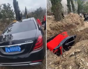 Na Kitajskem je pozornost javnosti pritegnil nenavaden pogrebni obred, na katerem so skupaj s pokojnikom v grob položili tudi prestižno nemško limuzino.